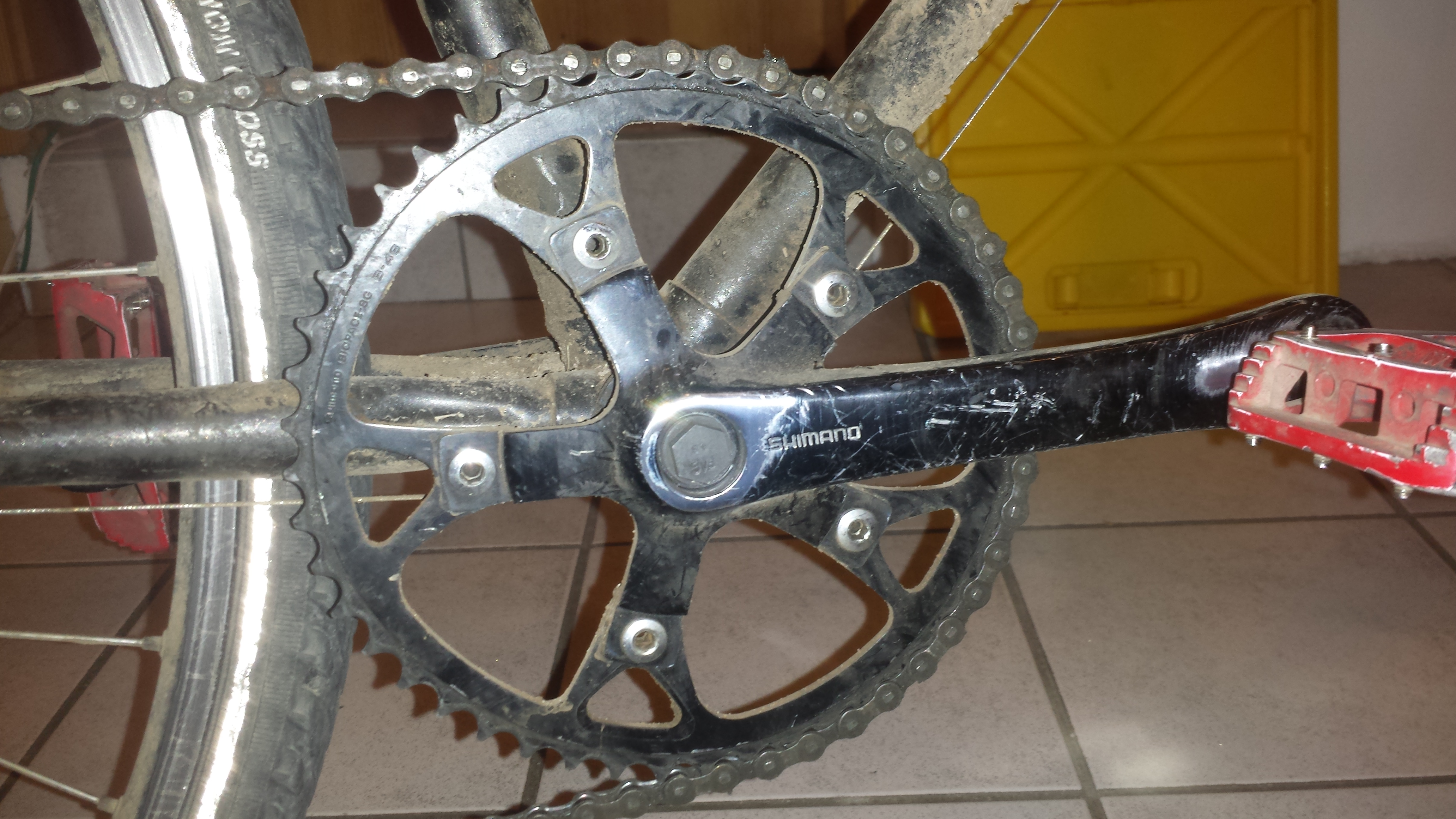 Wie unschwer zu erkennen ist, ist 1. die Kette total am Arsch und 2. das Kettenblatt auch nicht mehr so der Knaller.