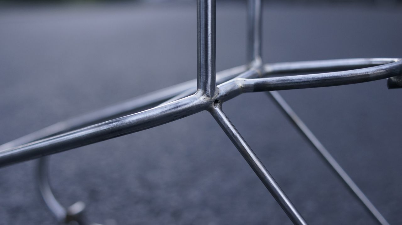 Überhaupt einen Montageständer zu haben ist so gigantisch, daß ich das gleich rausposaunen musste. Der ist auch perfekt sobald und solange das Rad eingespannt ist. Das Gewurstel mit den Muttern ist vernachlässigbar, relativ zur Zeitersparnis an einem in Augenhöhe fest und sicher eingebauten Fahrrad zu arbeiten. Geplant sind Einschlagmuttern einerseits und Knebel andererseits, mit Anschlägen, damit das nie unnötig weit aufgedreht ist.