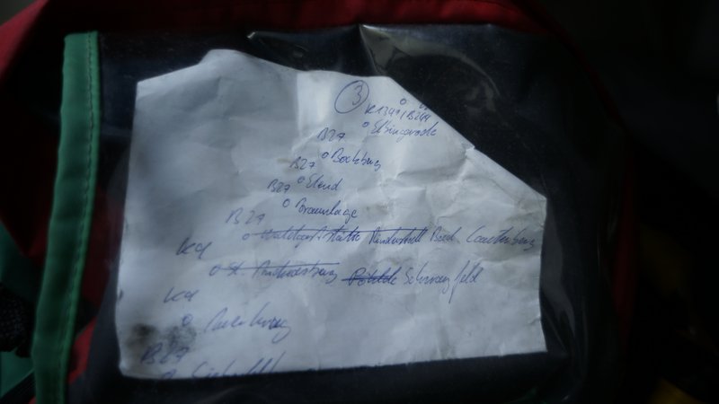 verbrauch: geschätzt dürfte an dem tag ca 5-6000kcal betragen haben (unterwegs gekauft: 2x0,33 coke; 2 teller nudeln bei ankunft). riegel sind nicht komplett weggegangen, rosinen und mandeln gar nicht.