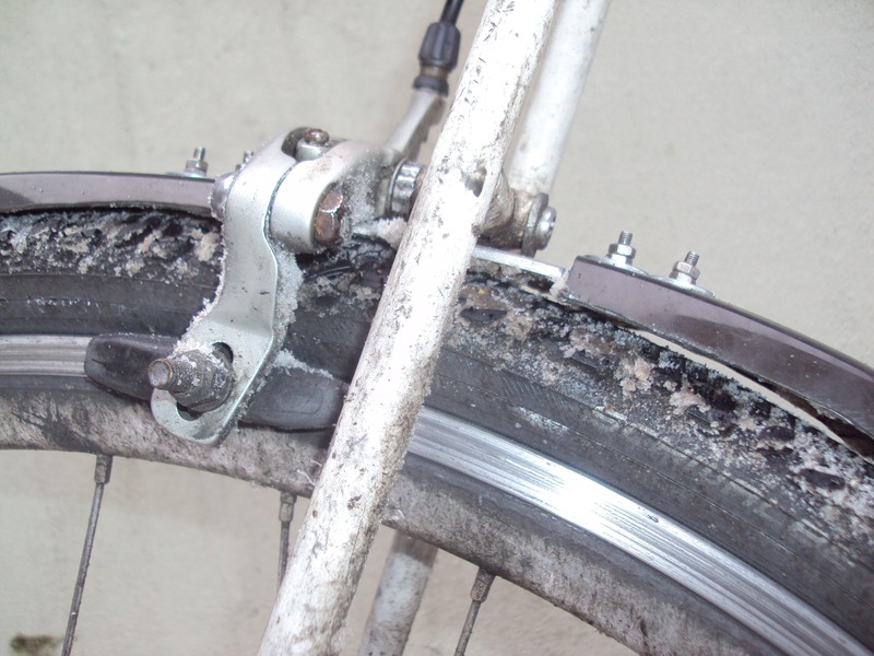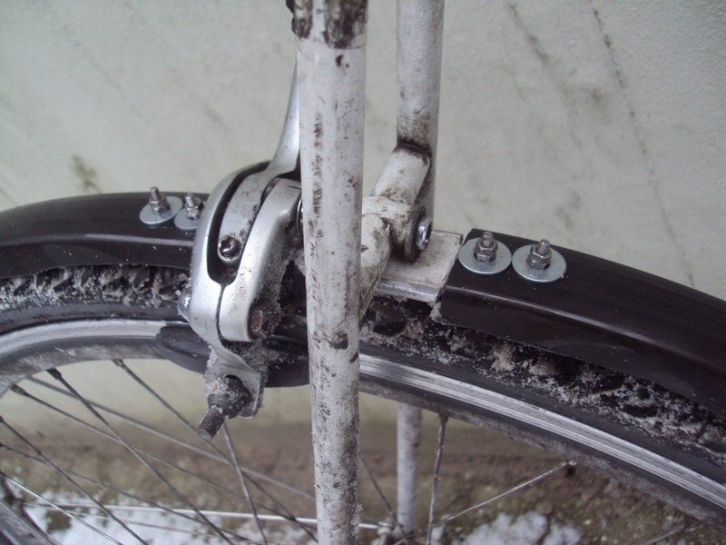 und dann hab ich noch nen abstandshalter gedremelt, weil die mudguards ja eigentlich für moderne rahmen mit fast null clearance sind und bei meinem 17 jahre alten rahmen mein daumen zw. bremssteg und mantel passt :D sieht jetzt bei blitzlicht so doof aus, sonst fällts fast gar nicht auf